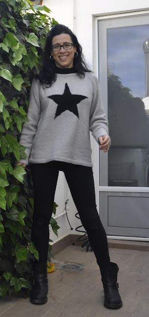 Using 4.5 mm straight needles, I knitted the back and then the front till the armpits. I drew the star at the computer and printed it. I then drew the star in a gridded paper that resembles my gauche, and followed the pattern row by row).I knitted then the two sleeves, using also straight needles.